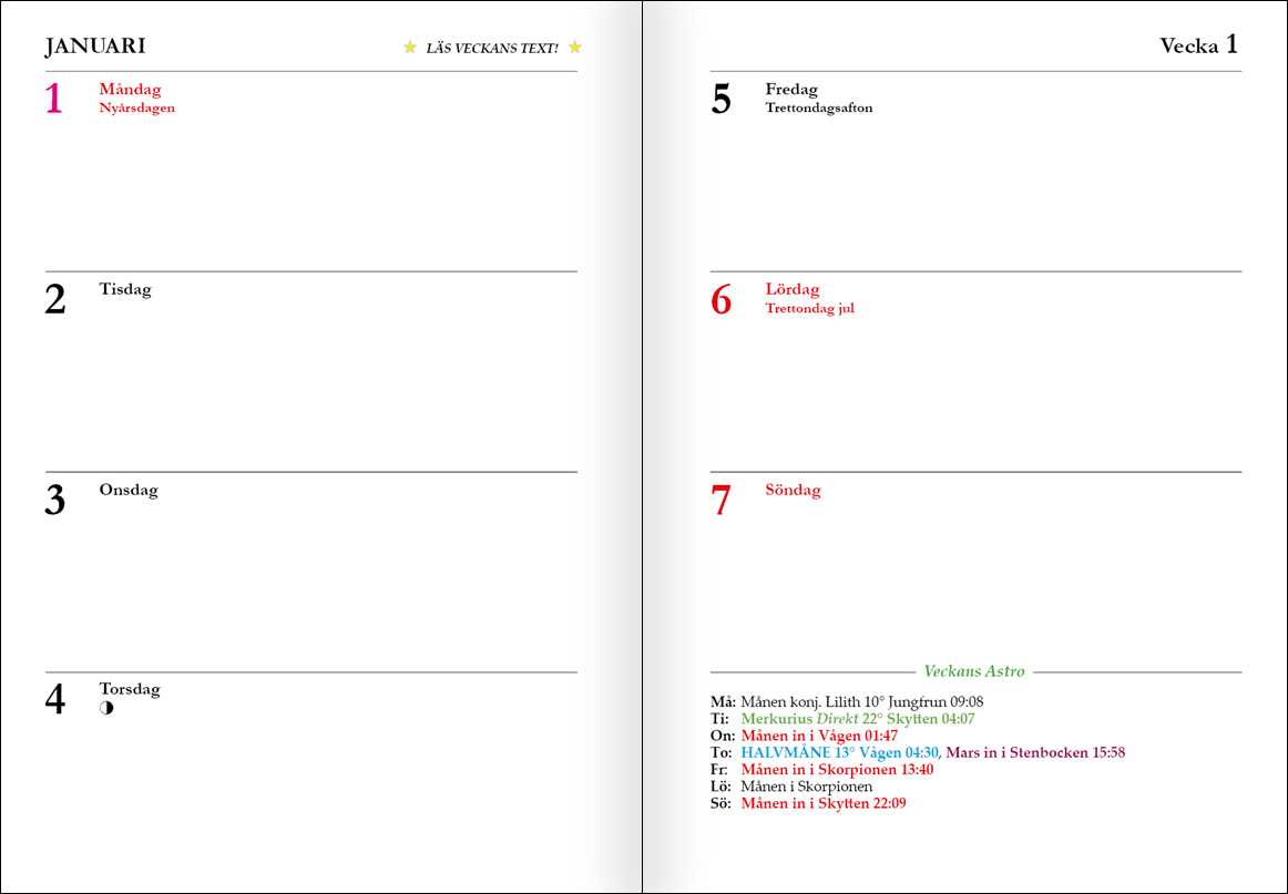 Uppslag för veckokalender